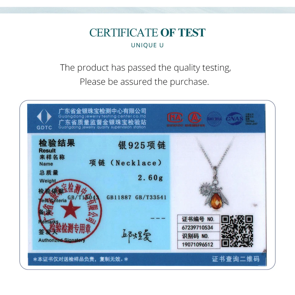 • Certificate Number: WOSTU Real 925 Sterling Brazil Citrine Crystal Honeybee Daisy Pendant