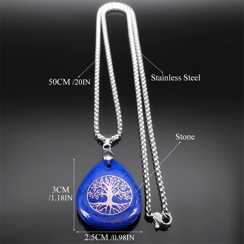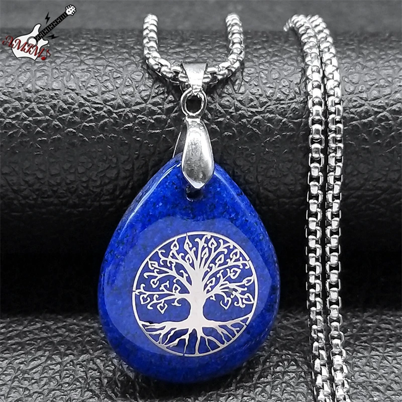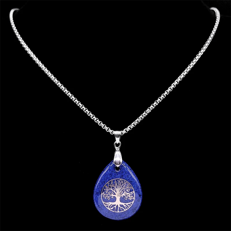 Yoga Tree of Life Necklace for Women Men Lapis Lazuli Stone Stainless Steel Silver Color Amulet Chain Jewelry collier