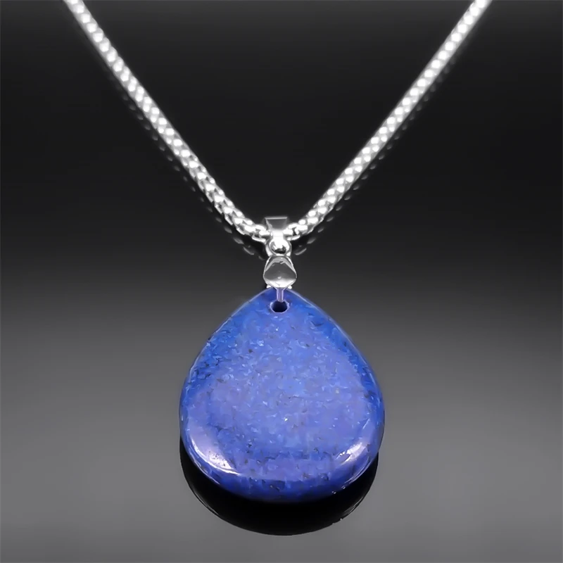 - Pendant Necklace: Lazuli Stone Alloy Pendant Necklace